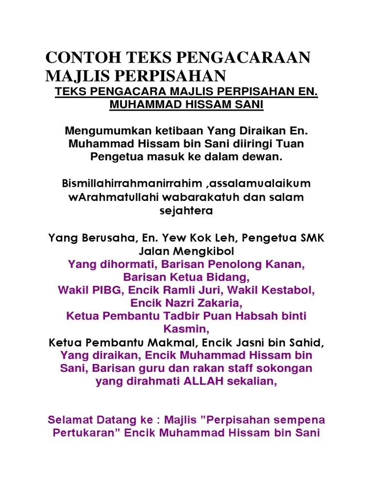 Saya juga pernah makan gaji. Dan lumrah kehidupan, setiap pertemuan pasti . Sebagai rujukan ini adalah contoh uca. Jujur, saya sedih harus meninggalkan pekerjaan ini dan berpisah dengan kalian. For more information and source see on this link. Majlis perpisahan persaraan saya dengan rasminya telah dibuat. Contoh ucapan wakil murid untuk majlis persaraan. Video ucapan perpisahan rekan kerja yang berpindah ke .